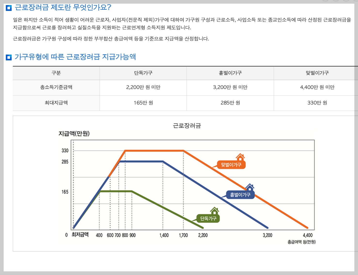 근로장려금은 저소득 근로자나 자영업자에게 현금으로 지급되는 제도입니다. 이 제도는 근로 유인을 높이고 실질 소득을 지원하기 위한 정부 복지 혜택의 일환으로, 경제적 어려움을 겪는 가구의 생활 안정을 돕는 데 목적이 있습니다. 소득과 재산 기준을 충족하는 경우 신청할 수 있으며, 가구 형태(단독, 홑벌이, 맞벌이)에 따라 지급액이 달라집니다.