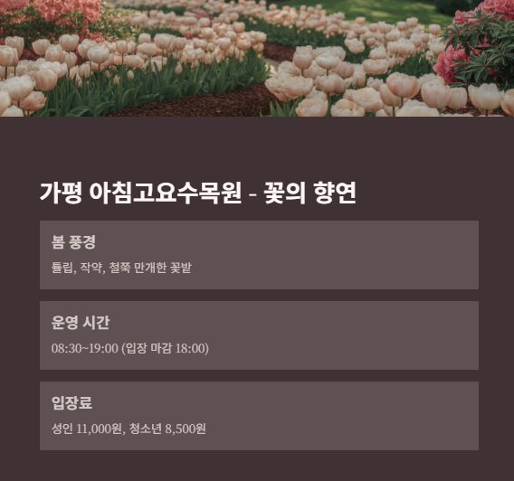 특히 가평 아침고요수목원과 방태막국수 조합은 맛과 멋을 모두 잡은 완벽한 하루 코스입니다.