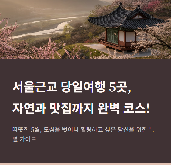 이번에는 서울근교 당일여행을 주제로, 자연과 풍경 중심의 힐링 코스 5곳을 소개해드릴게요.