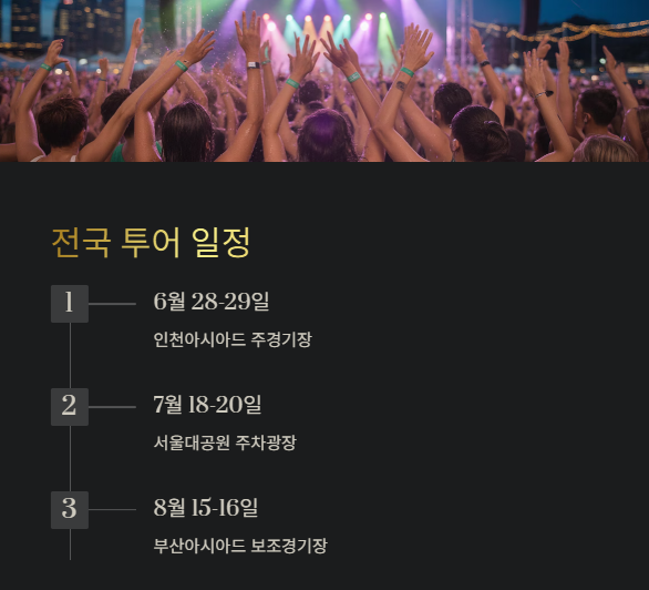 - 교통 팁: 서울·대구·부산 공연은 지하철/버스 필수 이용