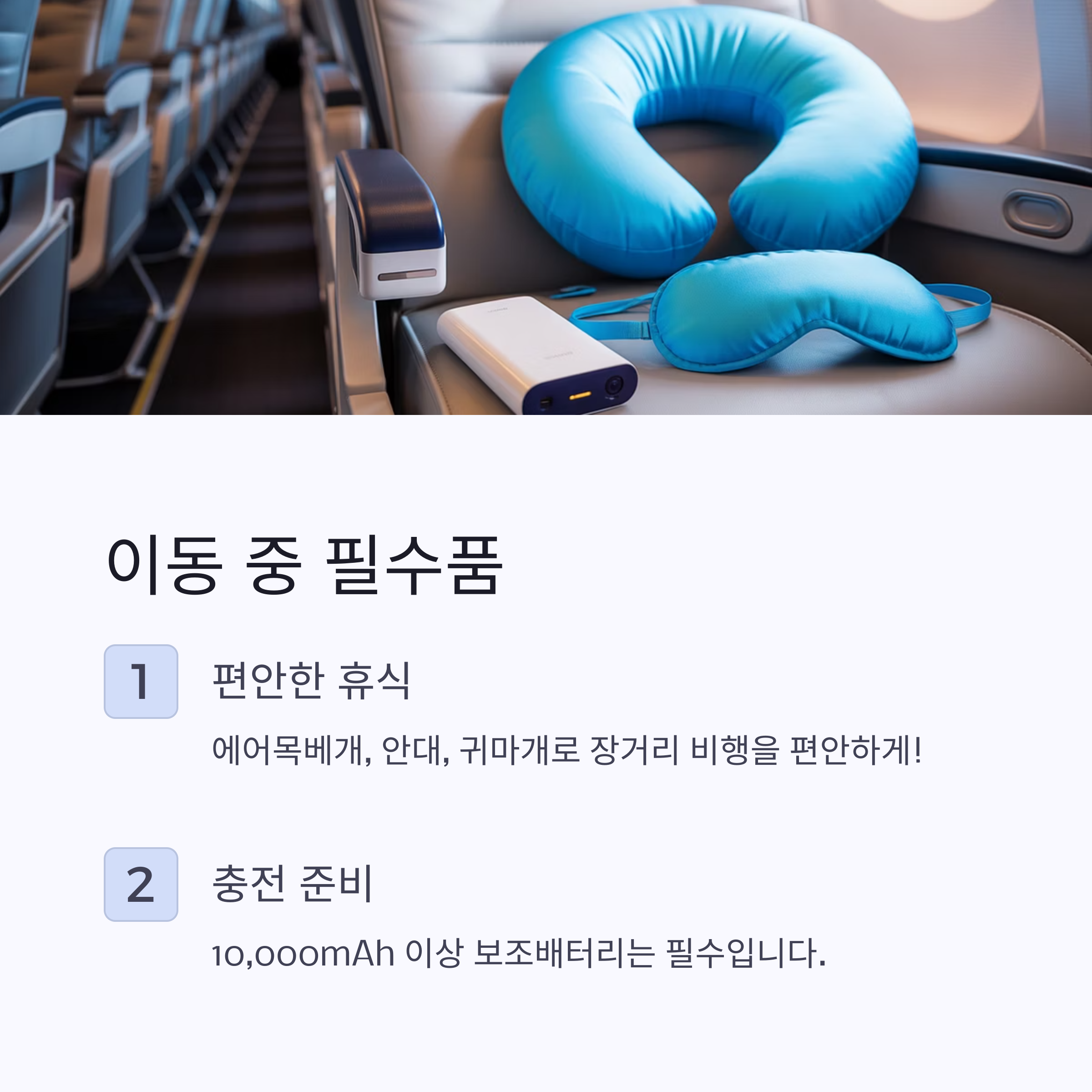 - 기내 필수품: 에어목베개, 보조배터리