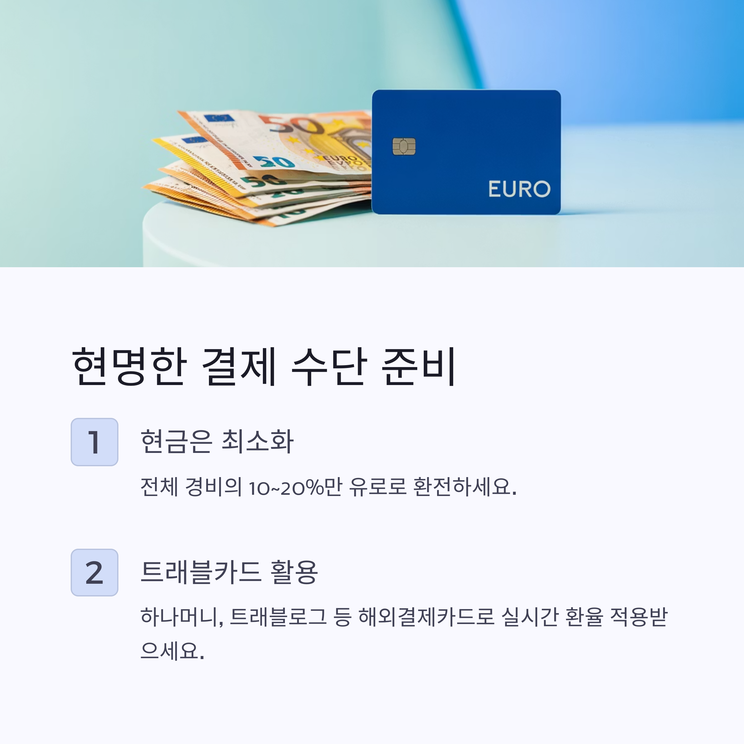 - 결제 수단: 유로 환전과 트래블카드
