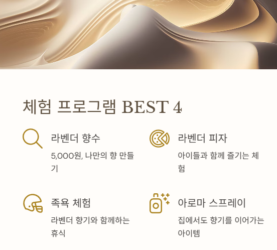 • 라벤더 향수 만들기: 5,000원 / 나만의 향을 담아가는 인기 프로그램