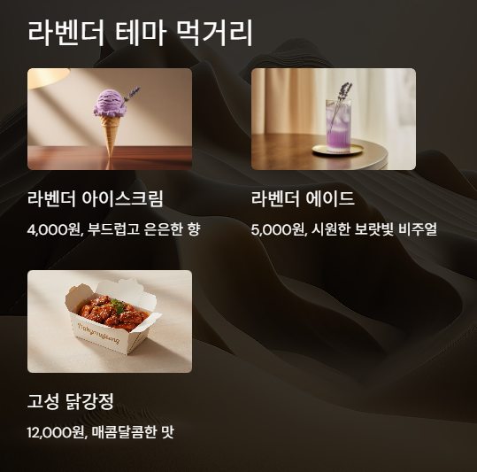 강원도 고성 라벤더 축제에서는 다양한 라벤더 테마 먹거리를 만날  있습니다.