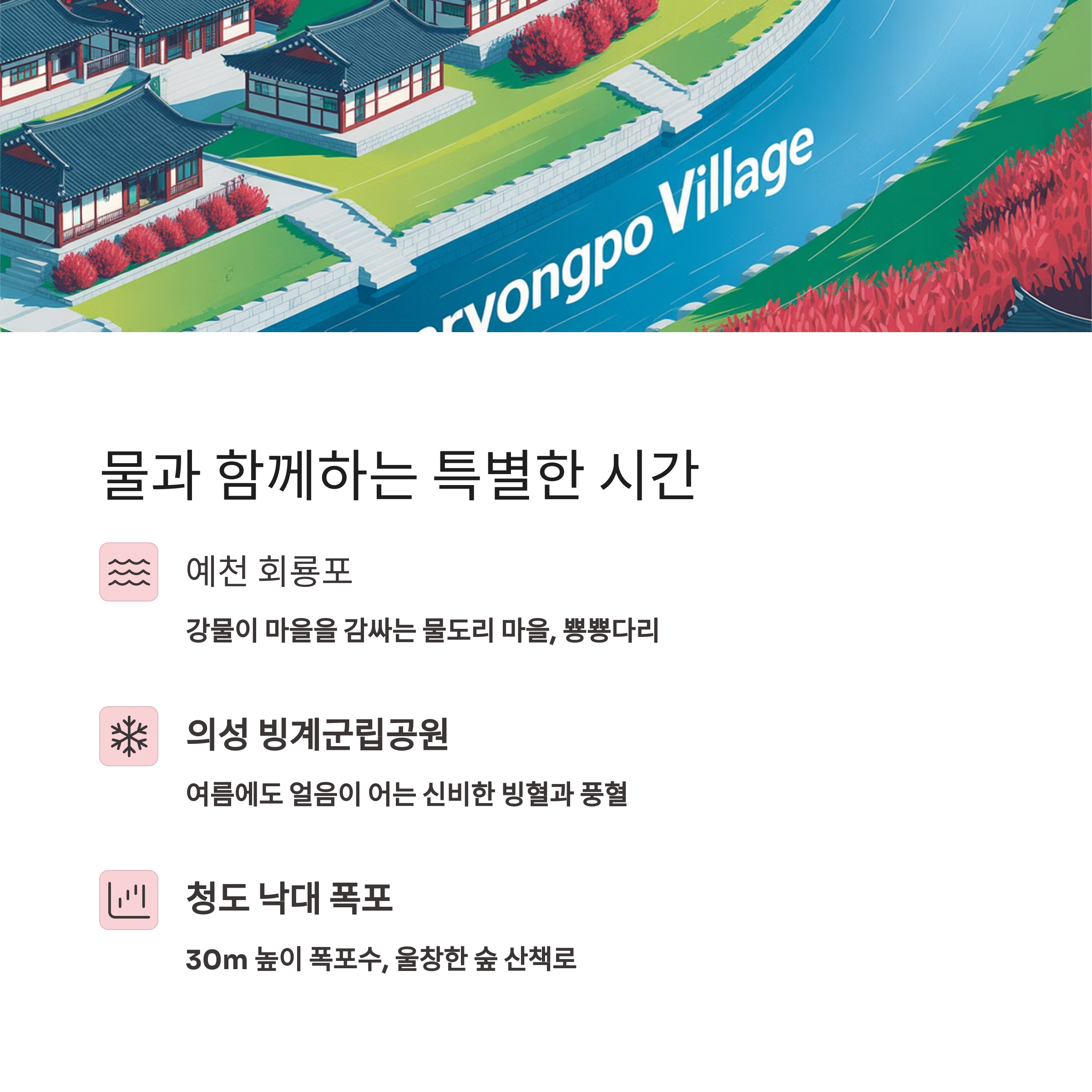 이처럼 경북 힐링 여행지는 단순히 예쁜 장소를 넘어, 내면의 휴식을 선물해 주는 특별한 공간들입니다. 조용한 산책길, 폭포 소리, 역사 깊은 고찰, 그리고 자연과 감성이 어우러진 길들 속에서 진짜 ‘쉼’을 경험해 보세요.