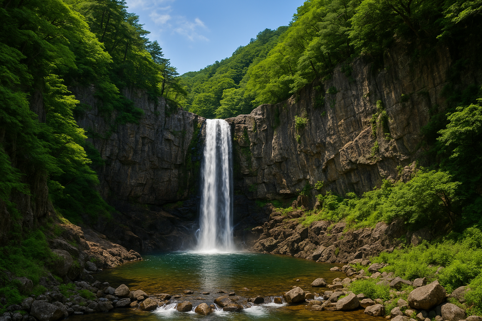 30m 높이에서 떨어지는 폭포수 소리만으로도 마음이 정화되는 곳입니다. 주변 산책로는 숲이 울창하고 공기도 맑아 여름철에도 시원한 힐링이 가능합니다.