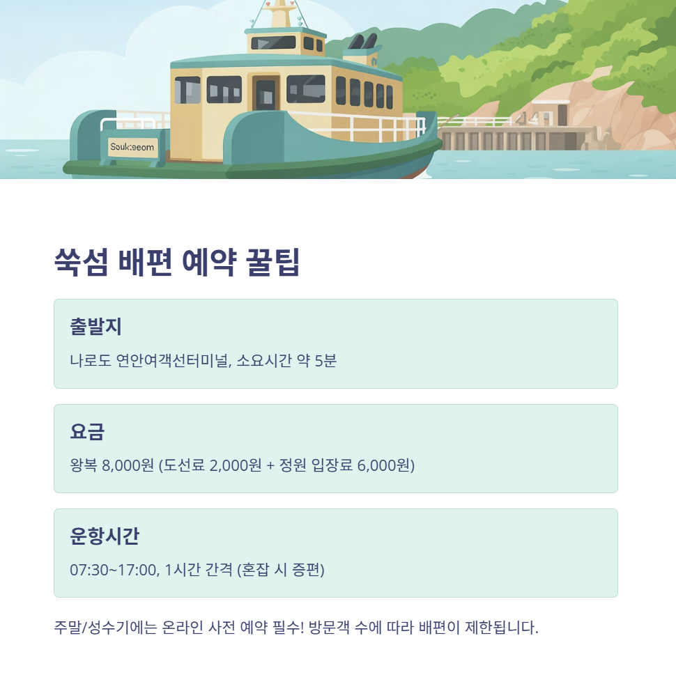 배편 예약부터 숙소, 맛집까지 꼼꼼히 준비하면 정말 완벽한 힐링 여행이 될 거예요.