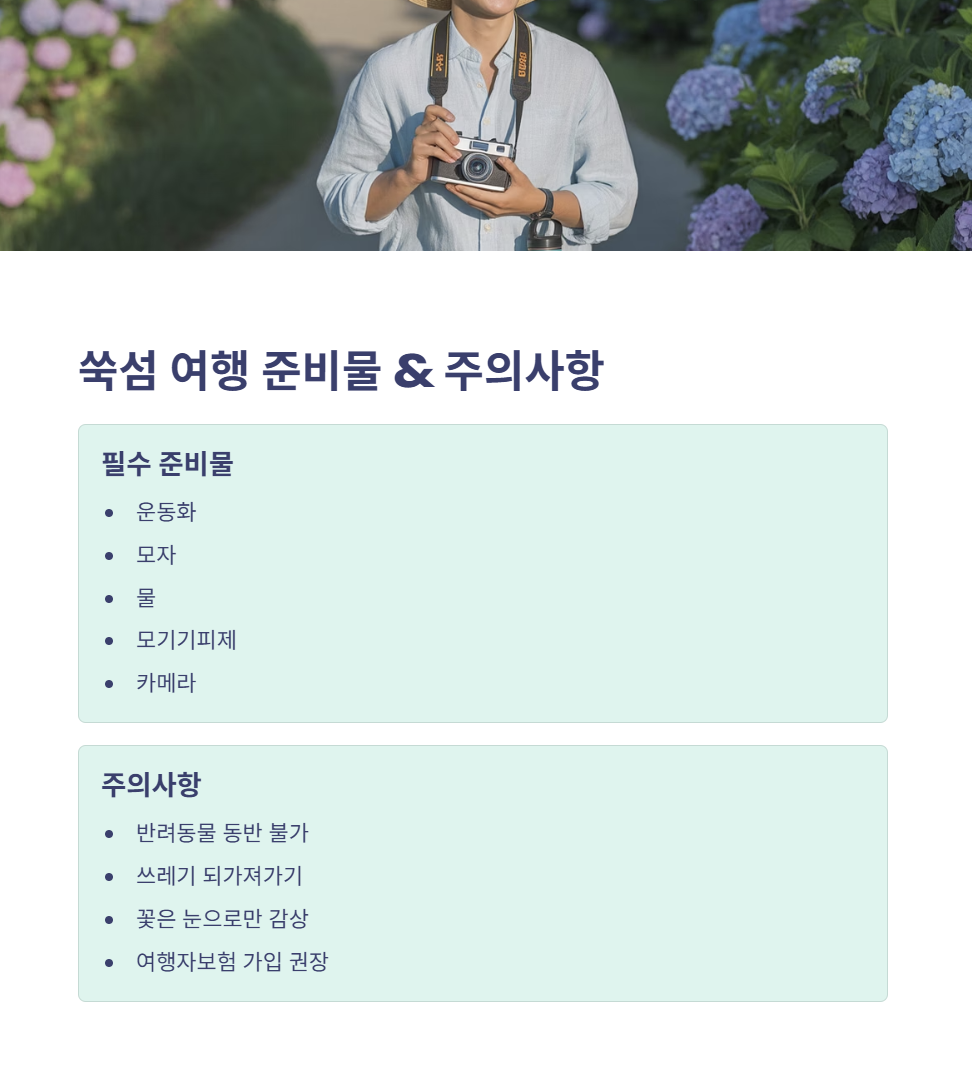 6. 쑥섬 여행 전 준비물 & 주의사항