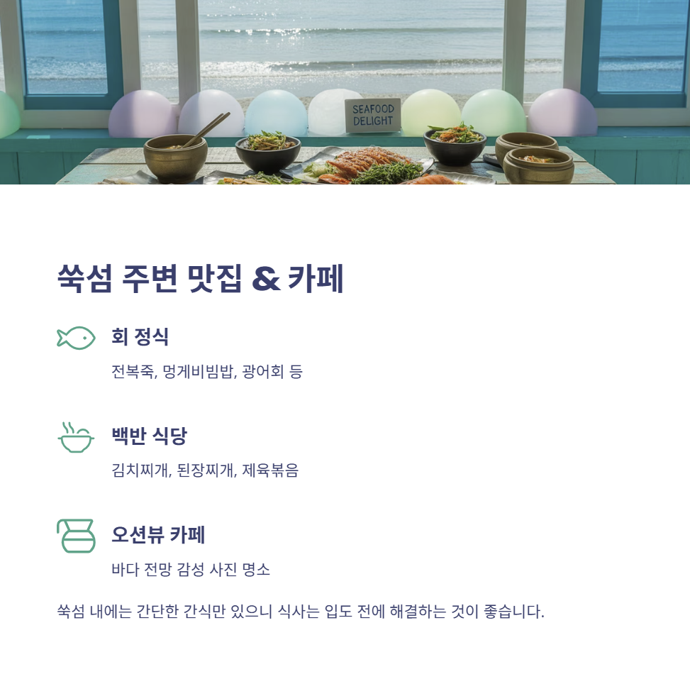 4. 쑥섬 내 식사 및 주변 맛집 정보