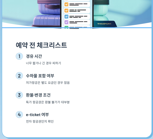 항공권 가격이 괜찮다고 바로 결제하기보다는, 아래 체크리스트를 한 번 더 확인하세요.