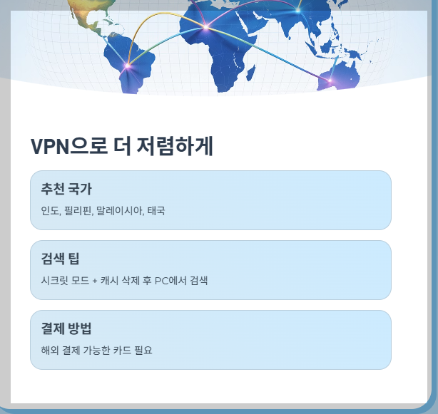 VPN을 활용하면 특정 국가 사용자에게 적용된 특가 항공권을 포착할 수 있어 더 저렴한 예약이 가능합니다.
