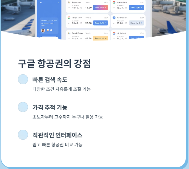 - 구글 항공권: 다양한 필터와 직관적인 검색화면 제공