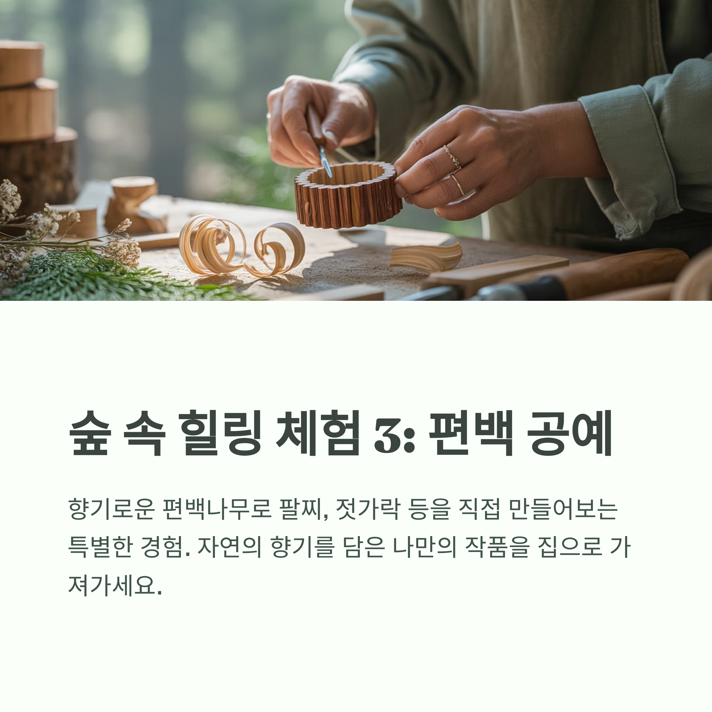 3. 편백 공예 클래스 – 팔찌·젓가락 등 직접 만들기