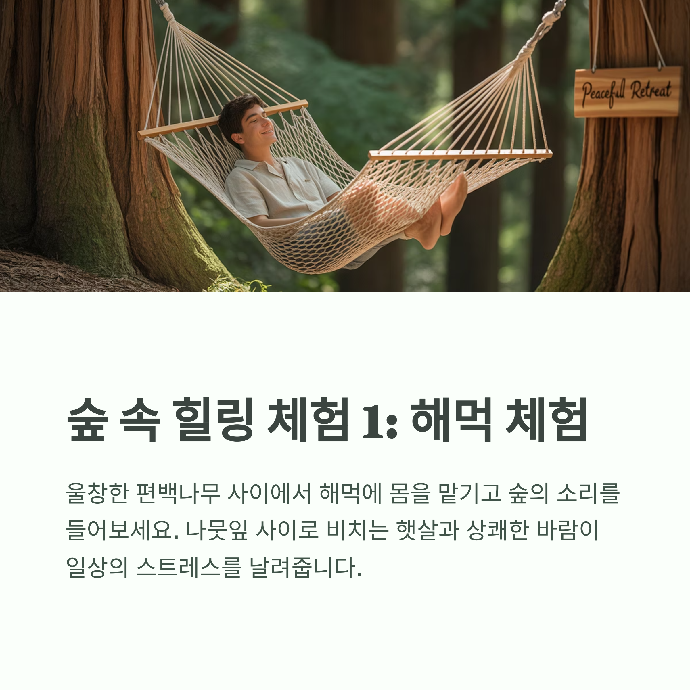 1. 해먹 체험 – 숲속 그늘 아래의 여유