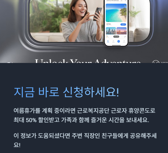 여름휴가를 계획 중이라면 지금이 기회입니다. 근로복지공단 근로자 휴양콘도를 적극 활용해 가족과 함께 즐거운 시간을 보내보세요. 연중 이용 가능하니 계절을 가리지 않고 활용해 보시길 추천드립니다.