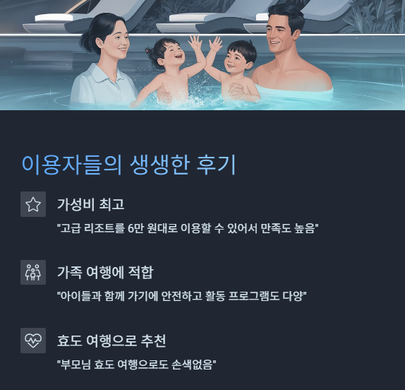 - “고급 리조트를 6만 원대로 이용할 수 있어서 만족도 높음”