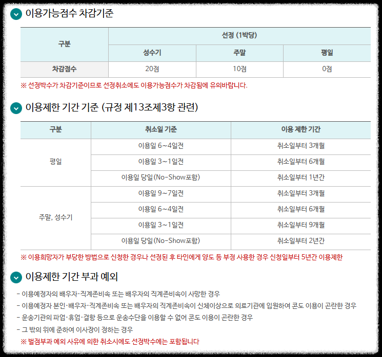 - 콘도 예약 후 무단 미이용 시 불이익 발생 가능