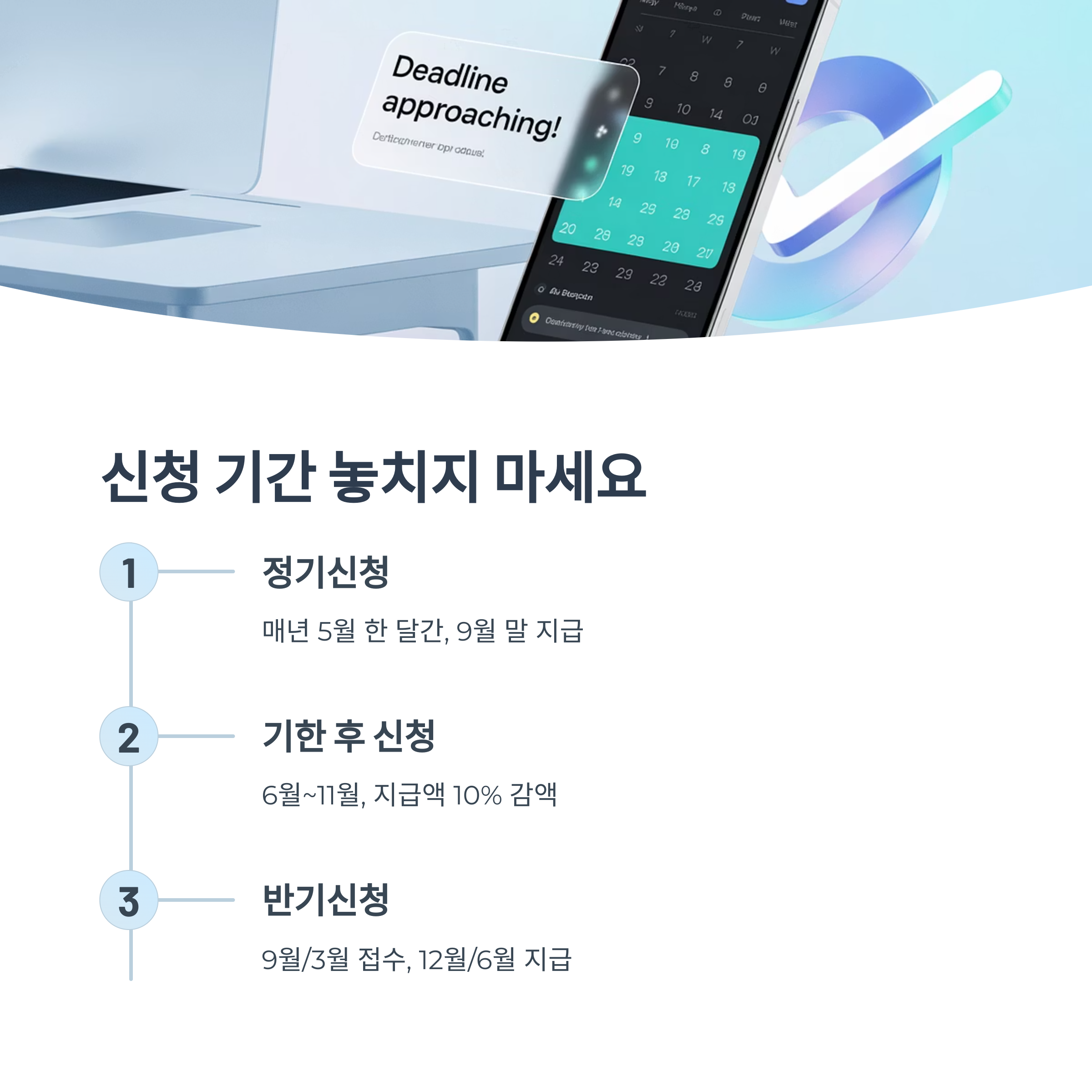 - 기한 후 신청: 6월~11월, 지급액 10% 감액