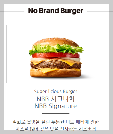 가장 기본이자 클래식한 노브랜드버거의 대표 메뉴는 NBB오리지널버거입니다.