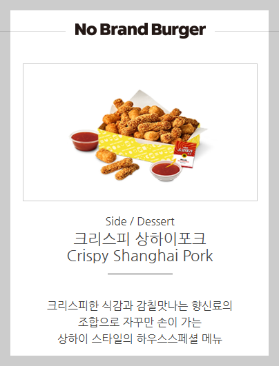 노브랜드버거의 인기 사이드 메뉴 중 하나인 **크리스피 상하이포크(s)**는 기대 이상이었습니다.
