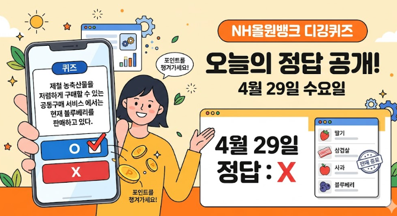 2. 농협 올원뱅크 디깅퀴즈 4월 29일 정답