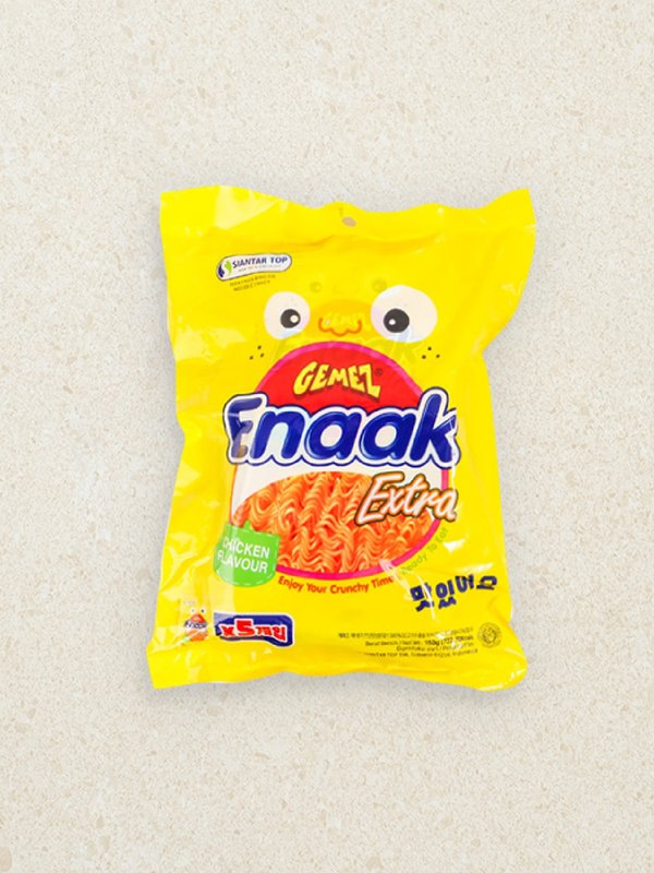 인도네시아에서 만든 라면 스낵으로, 바삭한 식감과 짭조름한 치킨 시즈닝이 인상적이에요.