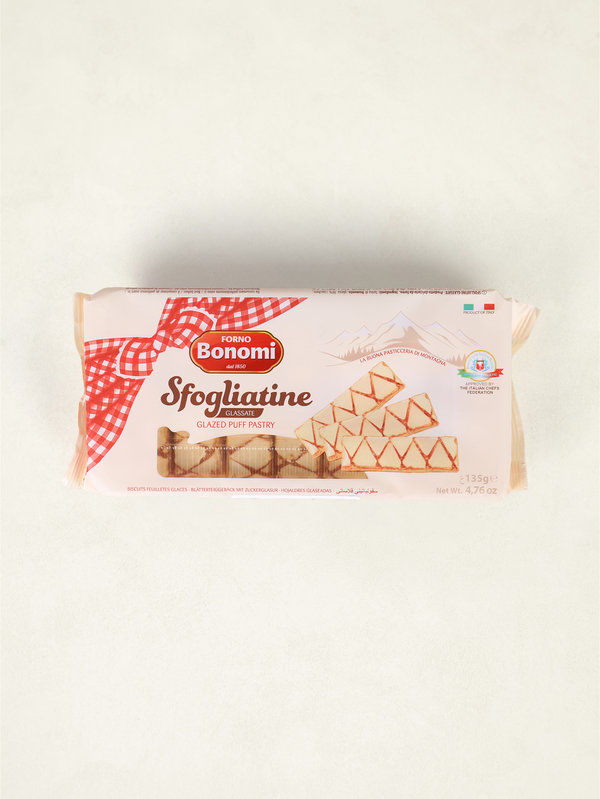 이탈리아산 페이스트리로, 겹겹이 쌓인 반죽 위에 설탕 코팅이 되어 있는 다이소 과자예요.