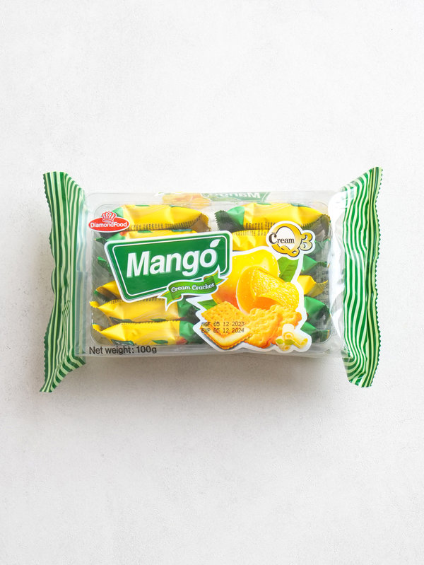 크래커 사이에 망고 크림이 들어가 있는 다이소 인기 상품!