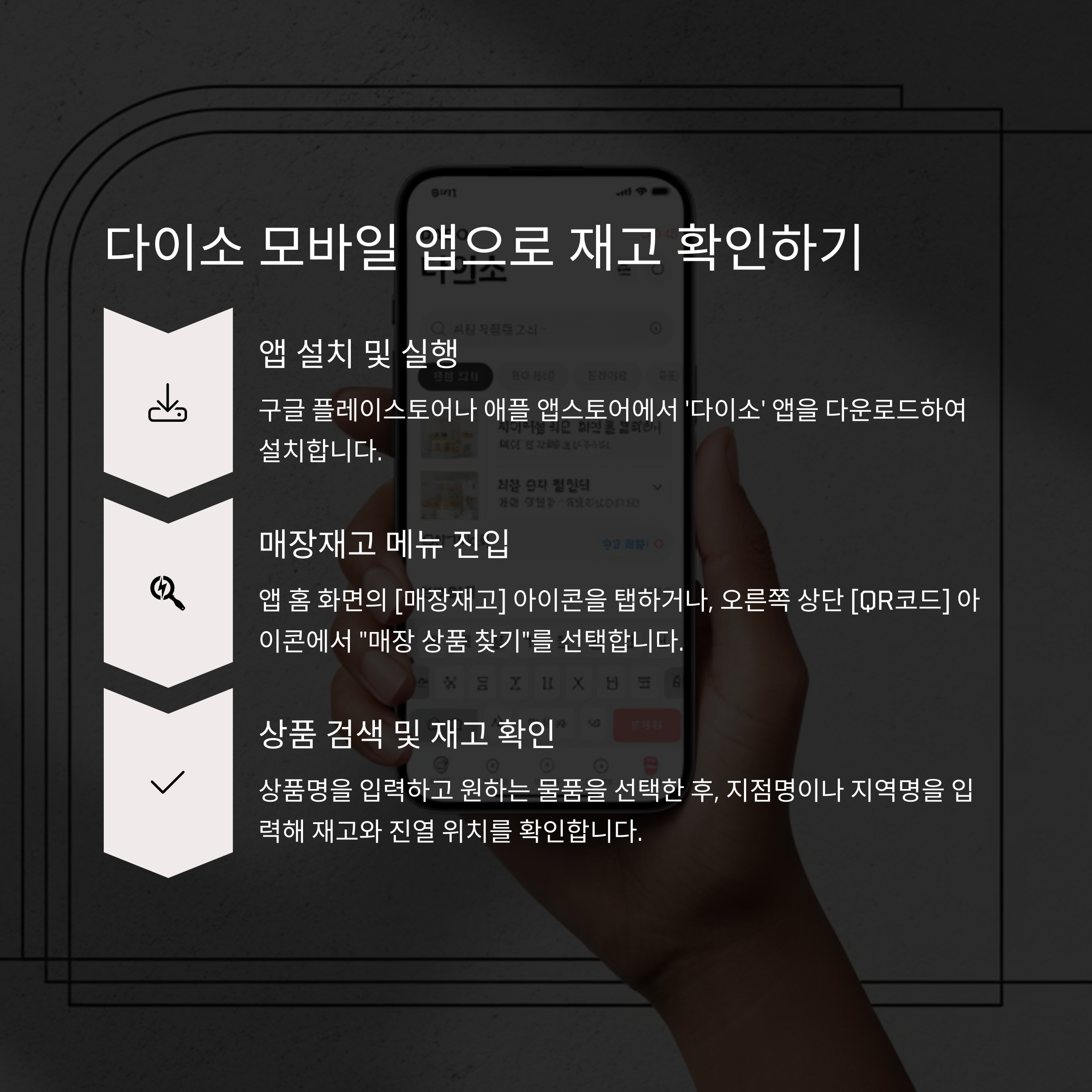 스마트폰에 다이소 앱이 설치되어 있다면, 앱을 통해 재고를 조회하는 것이 더욱 편리할 수 있습니다.