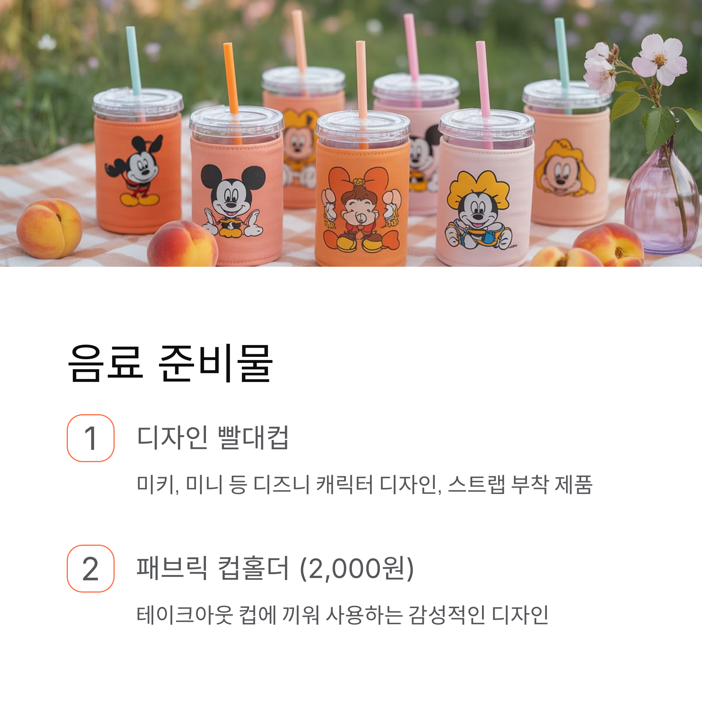 - 다양한 디자인의 빨대컵: 미키, 미니 등 디즈니 캐릭터 디자인의 빨대컵도 있어 아이들이 특히 좋아할 만합니다. 스트랩이 부착된 제품도 있어 나들이용으로 휴대하기 편리합니다.