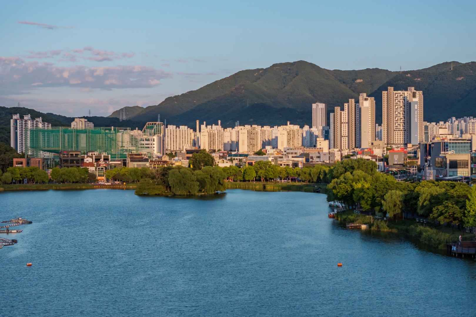 수성못은 대구에서 가장 대표적인 호수 산책 코스로, 대구 가볼 만한 곳을 검색하면 빠지지 않고 등장합니다. 낮에도 예쁘지만 특히 6월 저녁의 야경이 아름답기로 유명합니다.