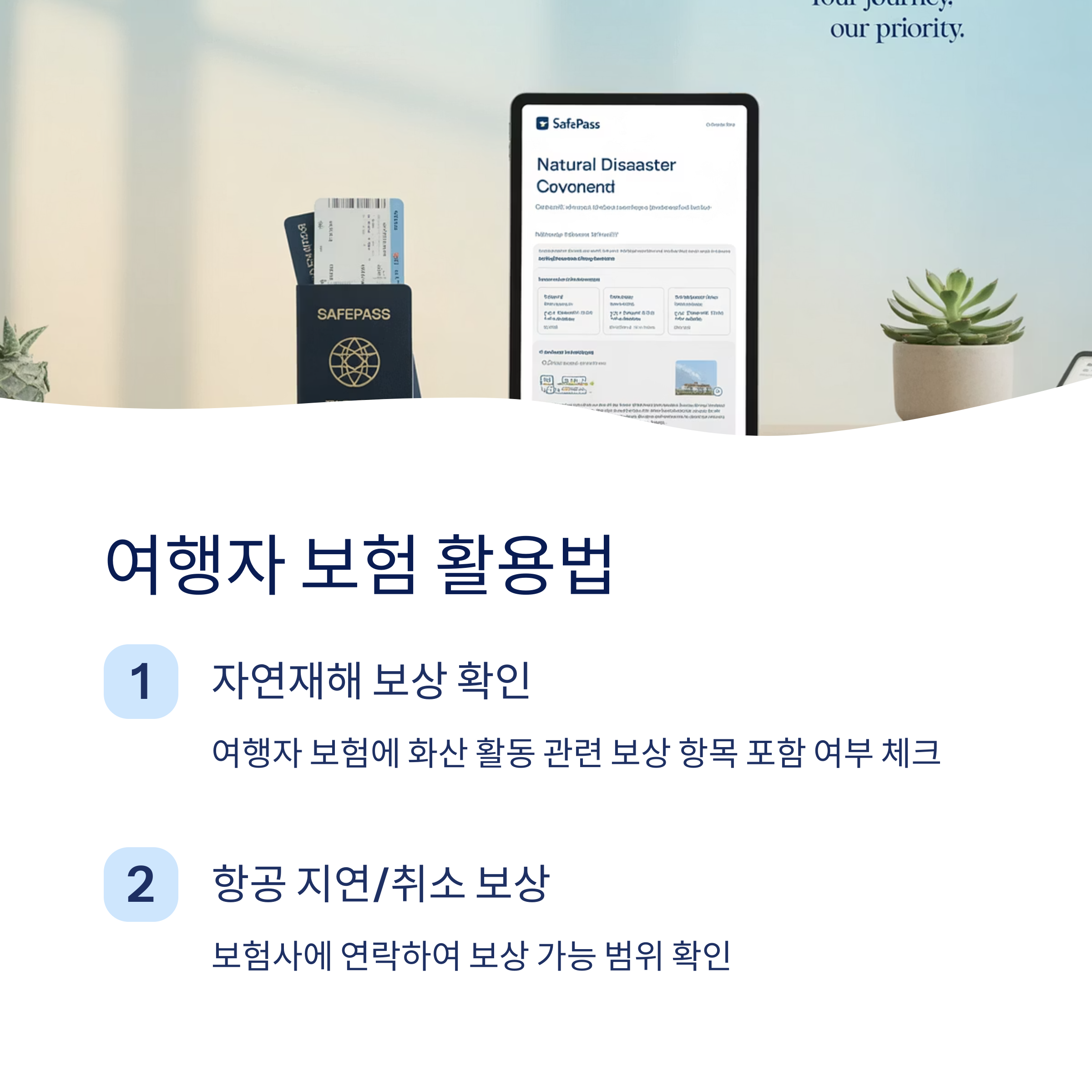 - 여행자 보험 활용: 가입하신 여행자 보험에 자연재해 관련 보상 항목이 포함되어 있는지 확인하세요. 항공편 지연이나 취소 시 보상을 받을 수 있는지 미리 체크하는 것이 중요합니다.