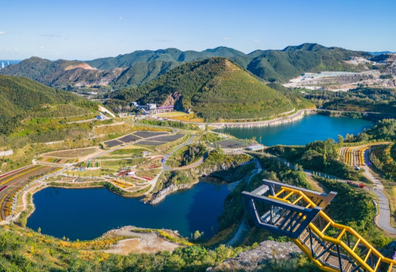 쇄석장 전망카페는 에메랄드빛 청옥호를 감상할 수 있는 명소입니다. 협소하지만 자연 속 힐링이 가능하고, 시멘트 아이스크림도 인기가 많아요. 4층 건물 내부에는 시멘트 생산 역사와 기록 전시가 함께 있어 관람할 만합니다.