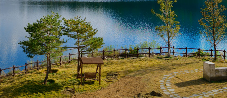 쇄석장 전망카페는 에메랄드빛 청옥호를 감상할 수 있는 명소입니다. 협소하지만 자연 속 힐링이 가능하고, 시멘트 아이스크림도 인기가 많아요. 4층 건물 내부에는 시멘트 생산 역사와 기록 전시가 함께 있어 관람할 만합니다.