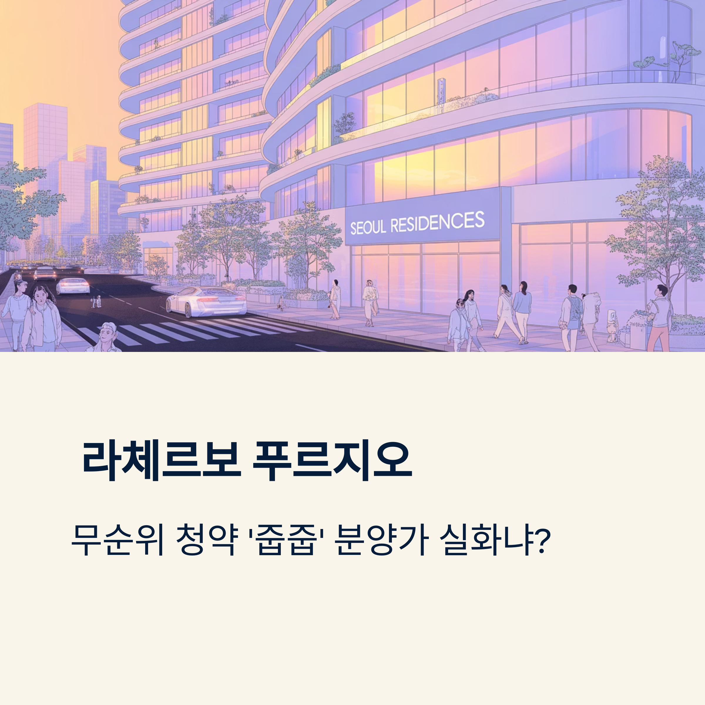 서울 성동구 왕십리 역세권에 위치한 라체르보 푸르지오 써밋의 무순위 청약, 일명 '줍줍' 소식이 전해지면서 많은 이들의 관심이 쏠리고 있습니다. 특히 내 집 마련을 꿈꾸는 분들에게는 주택 청약 당첨이 가장 현실적인 방법 중 하나인데요. 하지만 이번 라체르보 푸르지오 써밋 무순위 청약은 기존 일반 분양과는 다른 양상을 보이며 '분양가 실화냐'는 반응까지 나오고 있습니다. 2025년 7월 3일 현재를 기준으로, 과연 어떤 점들이 주목할 만한지 자세히 살펴보겠습니다.