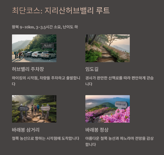 가장 짧고 무난한 바래봉 등산코스를 찾고 있다면, 지리산허브밸리에서 출발하는 코스를 추천드립니다.