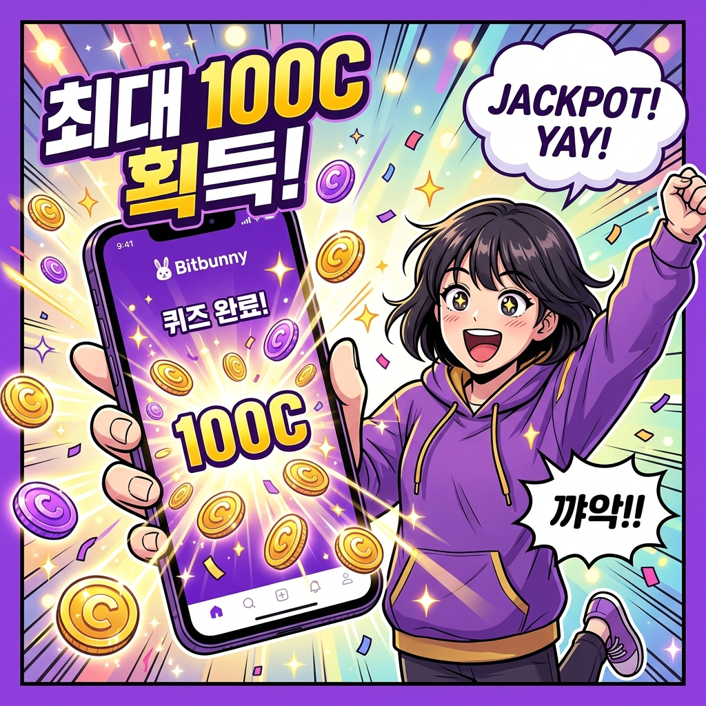 A. 비트버니 오늘의 상식 퀴즈는 매일 오전 0시부터 하루 동안 진행됩니다. 정답을 맞히면 최대 100C(코인)을 획득할 수 있답니다.