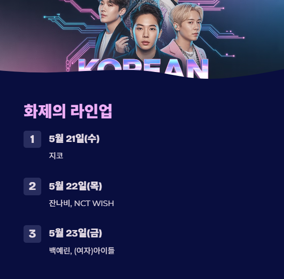 특히 (여자)아이들과 지코, 잔나비는 대학 축제 라인업 중에서도 인기 최상위권으로 평가받고 있어, 관람객 몰림이 예상됩니다.