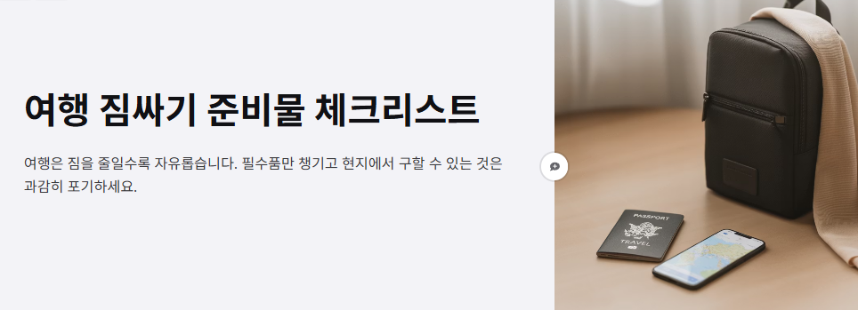 짐 싸기는 여행 준비의 시작이자 절반입니다. 한 번 잘 정리해 두면 다음 여행부터는 복사해서 바로 쓸 수 있을 정도로 효율이 올라갑니다. 이 글을 바탕으로 여러분만의 여행 체크리스트를 만들어보세요.