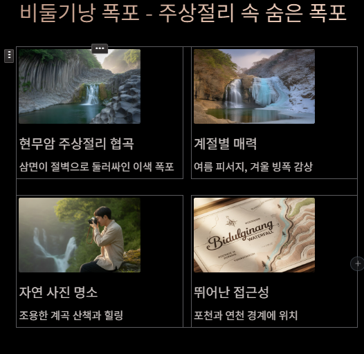 • 계절별 포인트: 가을 단풍, 겨울 빙폭도 유명