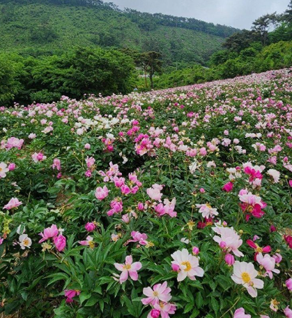 약 7,000평 규모의 작약꽃밭에는 연분홍, 순백색, 자주색 작약이 군락을 이루고 있었고,
