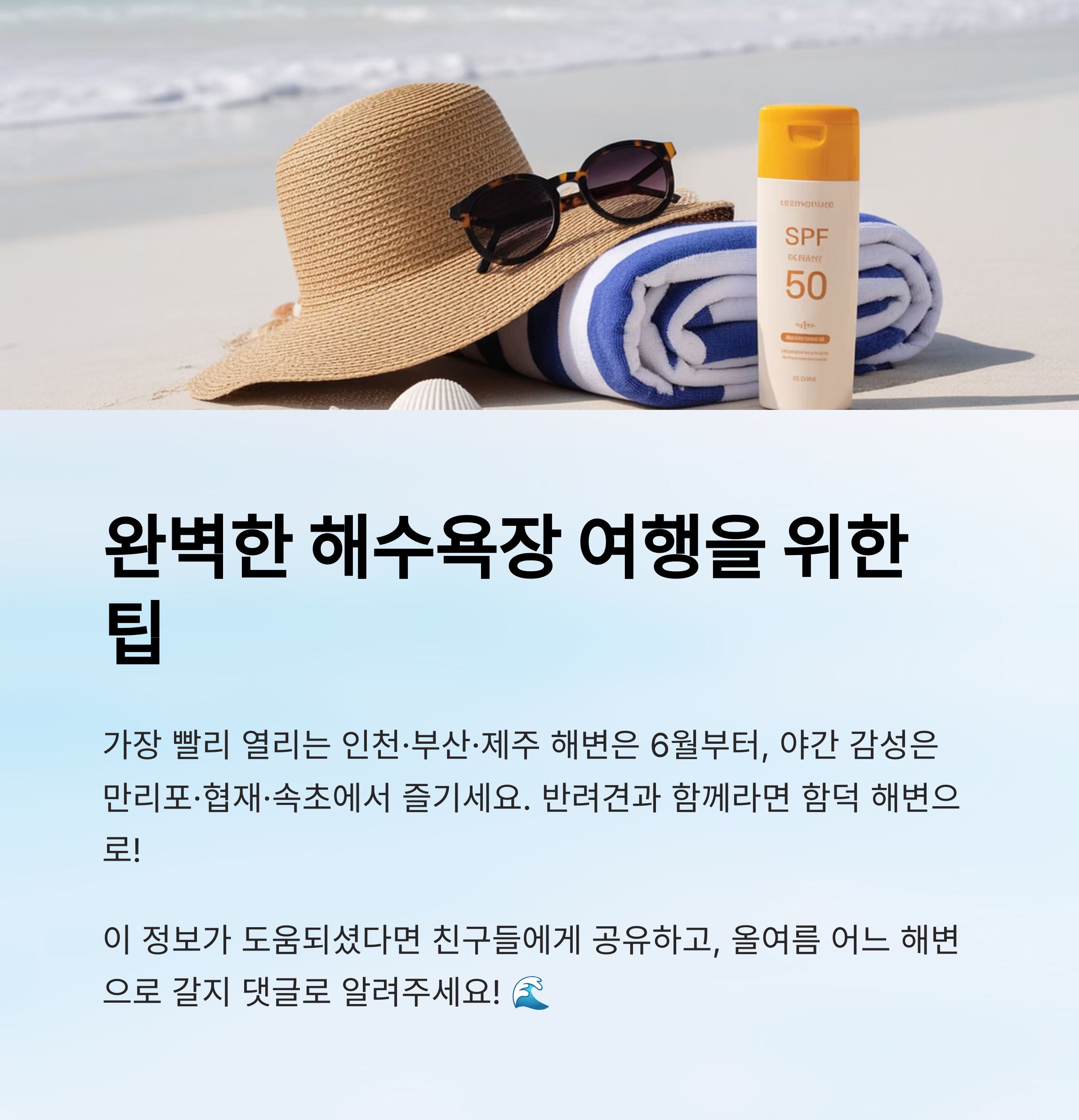 - 가장 먼저 열리는 해변 즐기기: 인천·부산·제주 해변은 6월 중순 개장
