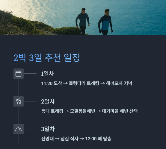 📅 1일 차: 섬 도착 & 둘레길 트레킹