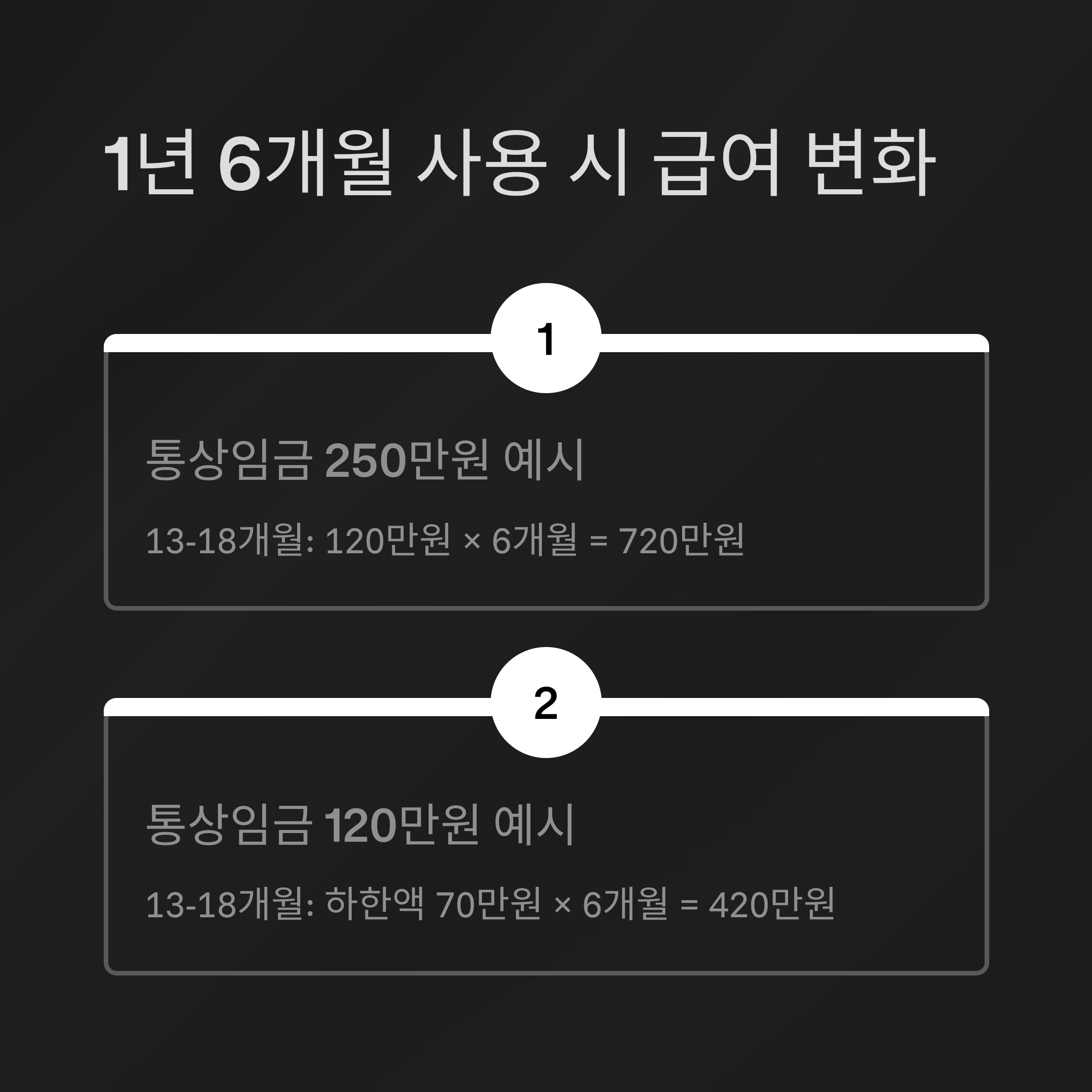 - 1년 6개월 사용 시 급여 구성 및 금액 변화