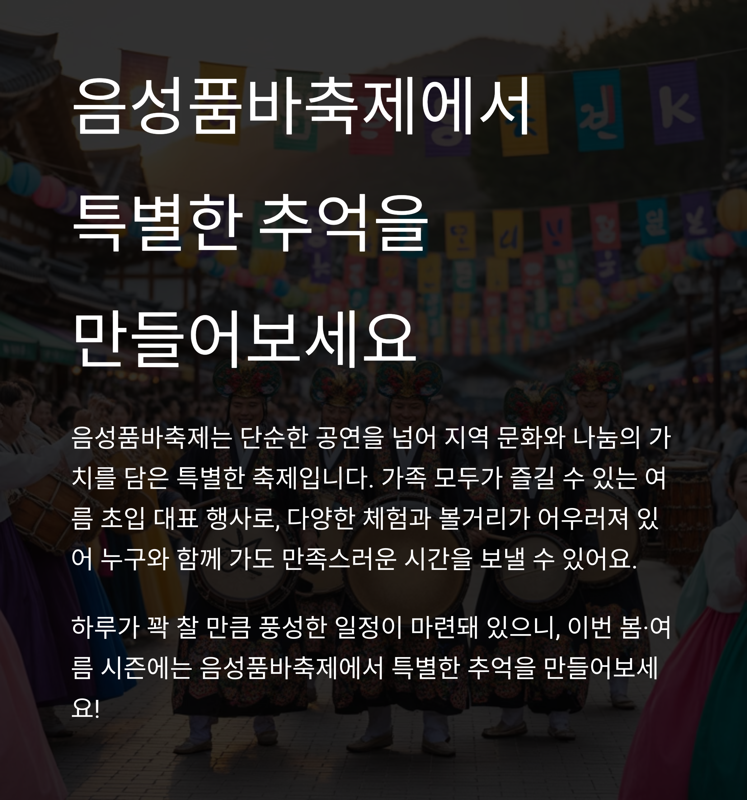 - 음성품바축제는 하루 코스로도 적당하며, 근처 충주·진천 연계 여행도 가능해요