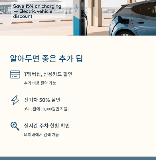 • 3박 5일 주차 시, 전기차는 약 18,000원 정도 소요