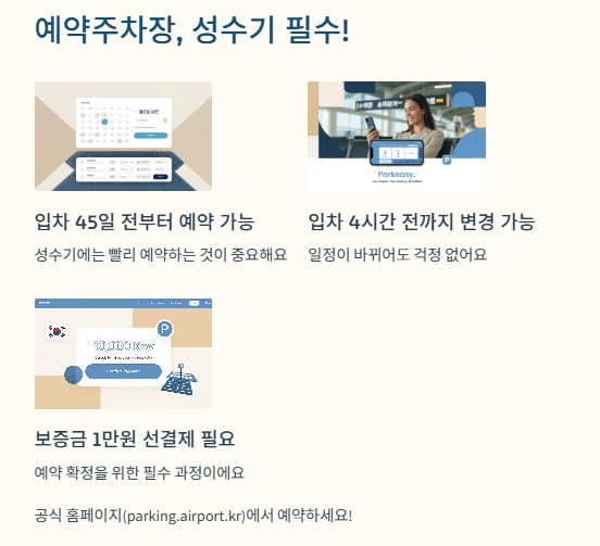 • 예약은 **공식 홈페이지(parking.airport.kr)**에서