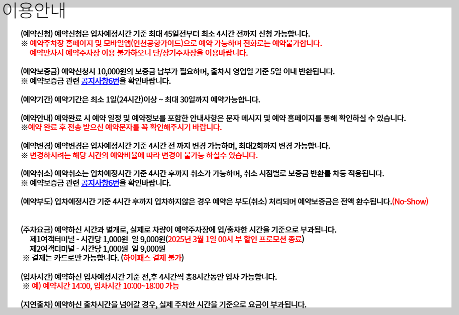 ※ 성수기에는 최소 7일 전 인천공항 1터미널 장기주차장 예약이 필요합니다.