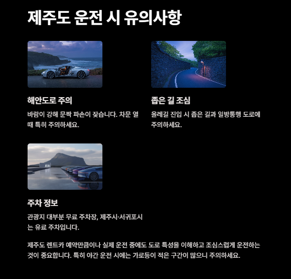 제주도 렌트카 예약만큼이나 실제 운전 중에도 도로 특성을 이해하고 조심스럽게 운전하는 것이 중요합니다.