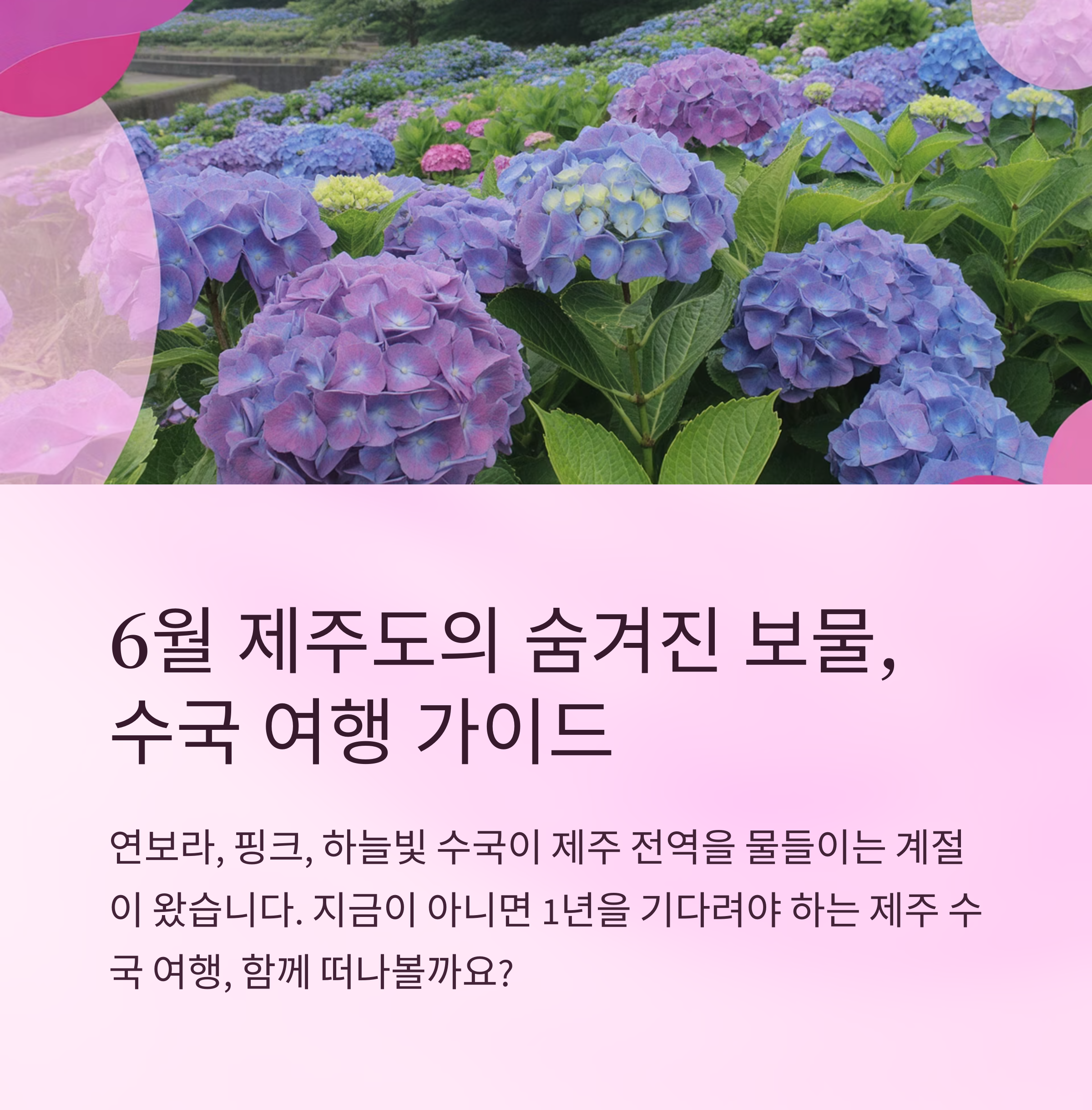 “6월의 제주도는 수국을 위한 계절입니다.”